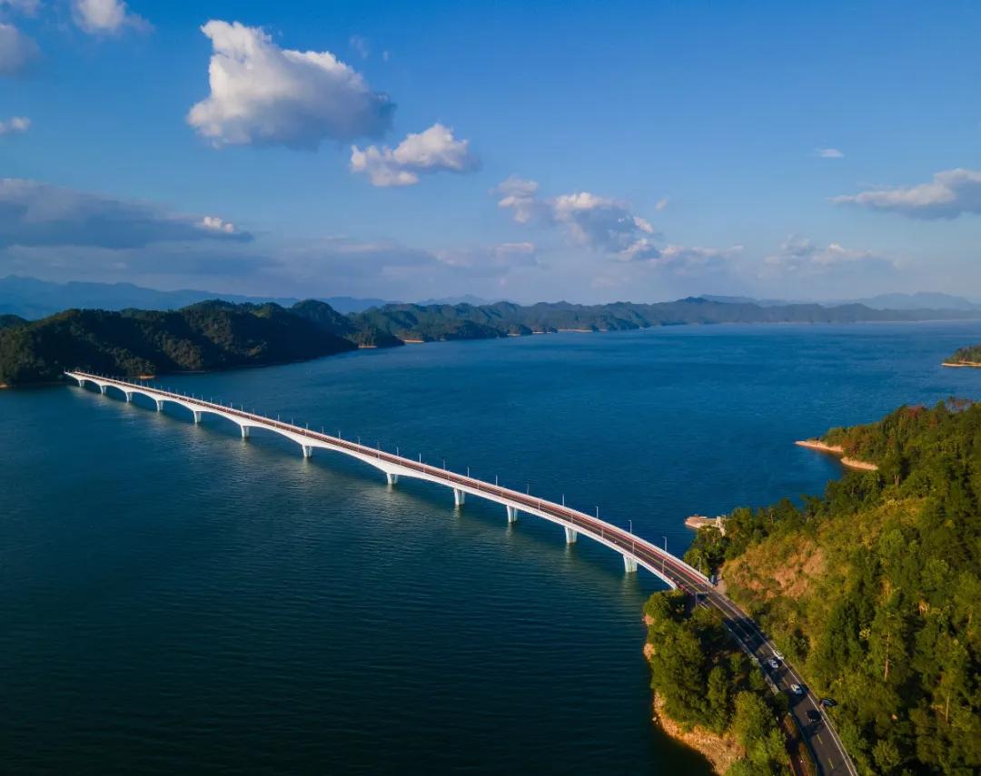 紧临上江埠大桥,观景台视野极佳,可俯瞰千岛湖广阔湖面与错落分布的小岛。晴天时,蓝天白云倒映在澄澈湖水中,波光粼粼,美轮美奂,在这里可以稍作停留,用相机定格这如诗如画的湖光山色,也能缓解骑行疲劳,为后续行程蓄力。