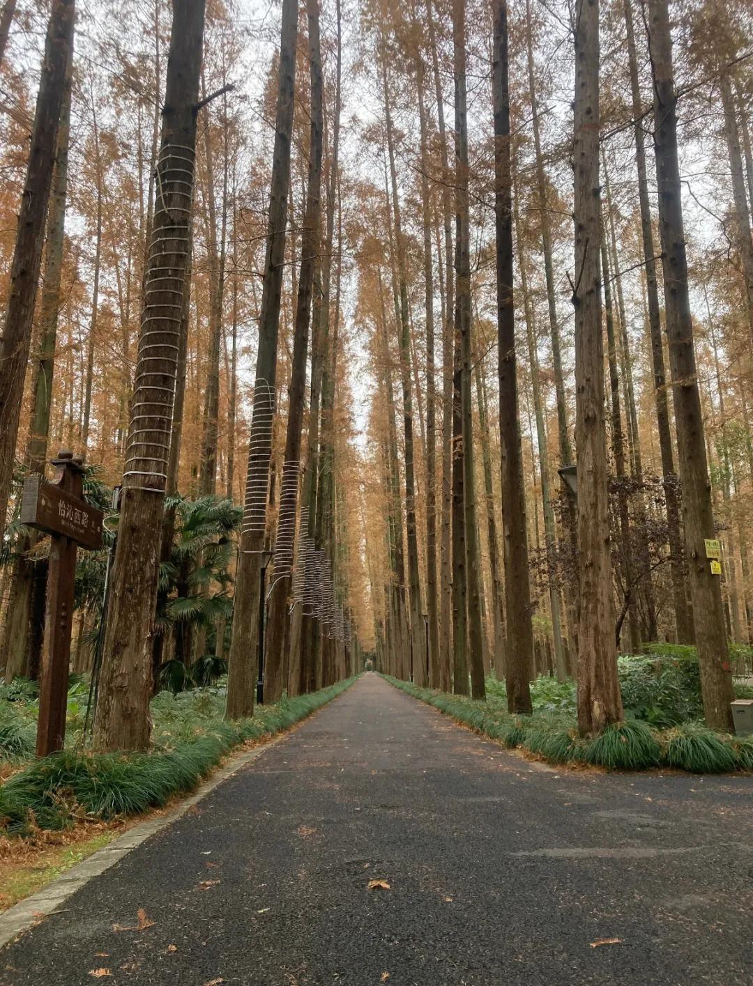 是环岛路线的核心路段,两侧水杉笔直如卫兵,秋季金黄璀璨铺满路面,骑行其中风声掠过耳畔,沿途不时有白鹭等鸟类栖息,还能偶遇专业骑手训练场景,堪称生态与运动的完美结合。