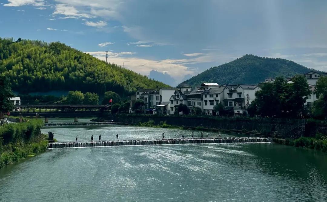 位于骑行路线的核心乡村节点,是千岛湖周边颇具特色的“生态美村”。村子被青山绿水环绕,白墙黛瓦的民居错落分布在田间,骑行进入村内时,能看到连片的茶园、果园与荷塘。
