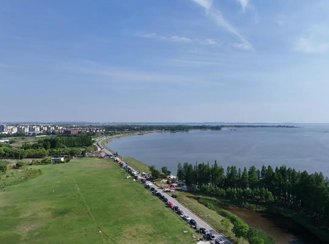 位于港东公路旁,是崇明岛最大的天然淡水湖,湖边有草坪与观景台,可停下休憩,看湖面波光粼粼,傍晚还能欣赏“湖天一色”的日落;