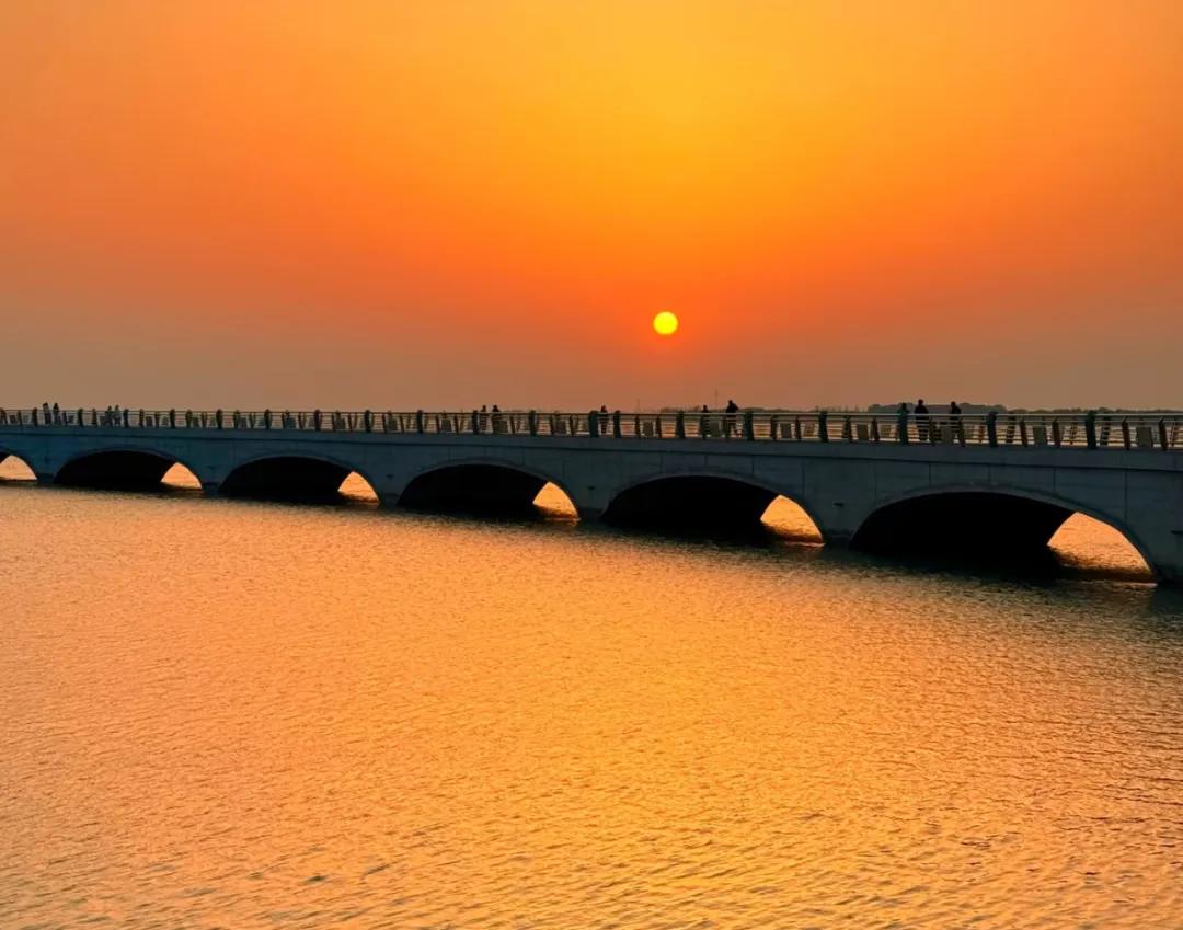 全长1.47公里的滨湖景观桥,白色桥身搭配湛蓝湖水,桥上设有观景平台,可驻足远眺淀山湖全景,晴天时蓝天白云倒映湖面,随手拍都是“小清新大片”;